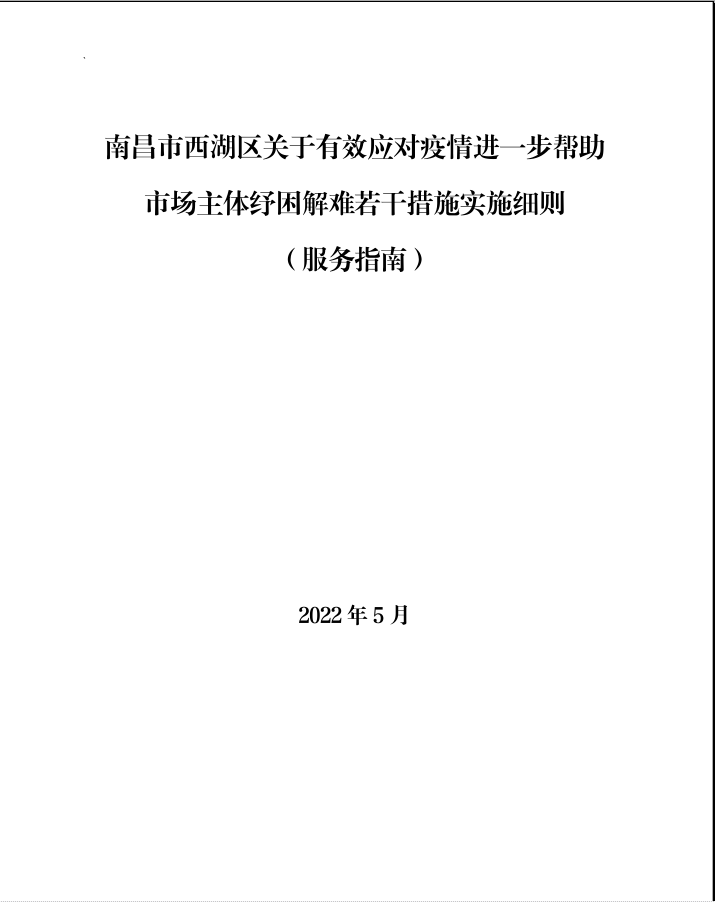 西府办发〔2022〕18号:关于印发《南昌市西湖区关于应对疫情进一步帮助市场主体纾困解难若干措施实施细则(服务指南)》的通知