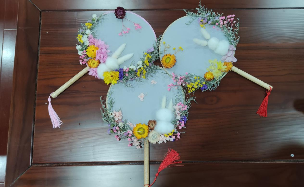 在中秋佳节来临之际,为进一步促进我区女性干部增强文化自信,区文广新局、区妇联联合开展了团扇手工制作活动,团扇古称“宫扇”,亦称“纨扇”,是中华民族传统工艺品,具有深厚的汉文化底蕴。活动邀请了廖凌凌老师在微课堂进行现场教学,廖老师向大家详细讲解了手工团扇的由来、制作方法及相关注意事项。大家在指导老师的帮助下,根据个人喜好与审美,发挥自己丰富的想象力和创作力,制作属于自己的手工团扇。一幅幅生动的图案搭配颜色各异的永生花呈现在扇面上,金属珠串点缀在团扇两侧相得益彰,一把把古香古色的团扇作品出炉。